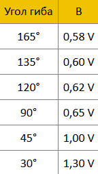 Усилие и длина гиба