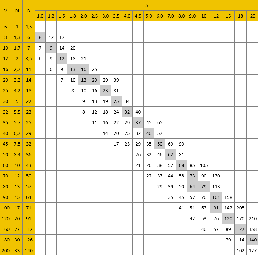 V=8xS, для большей толщины листа необходимо V=10xS или V=12xS